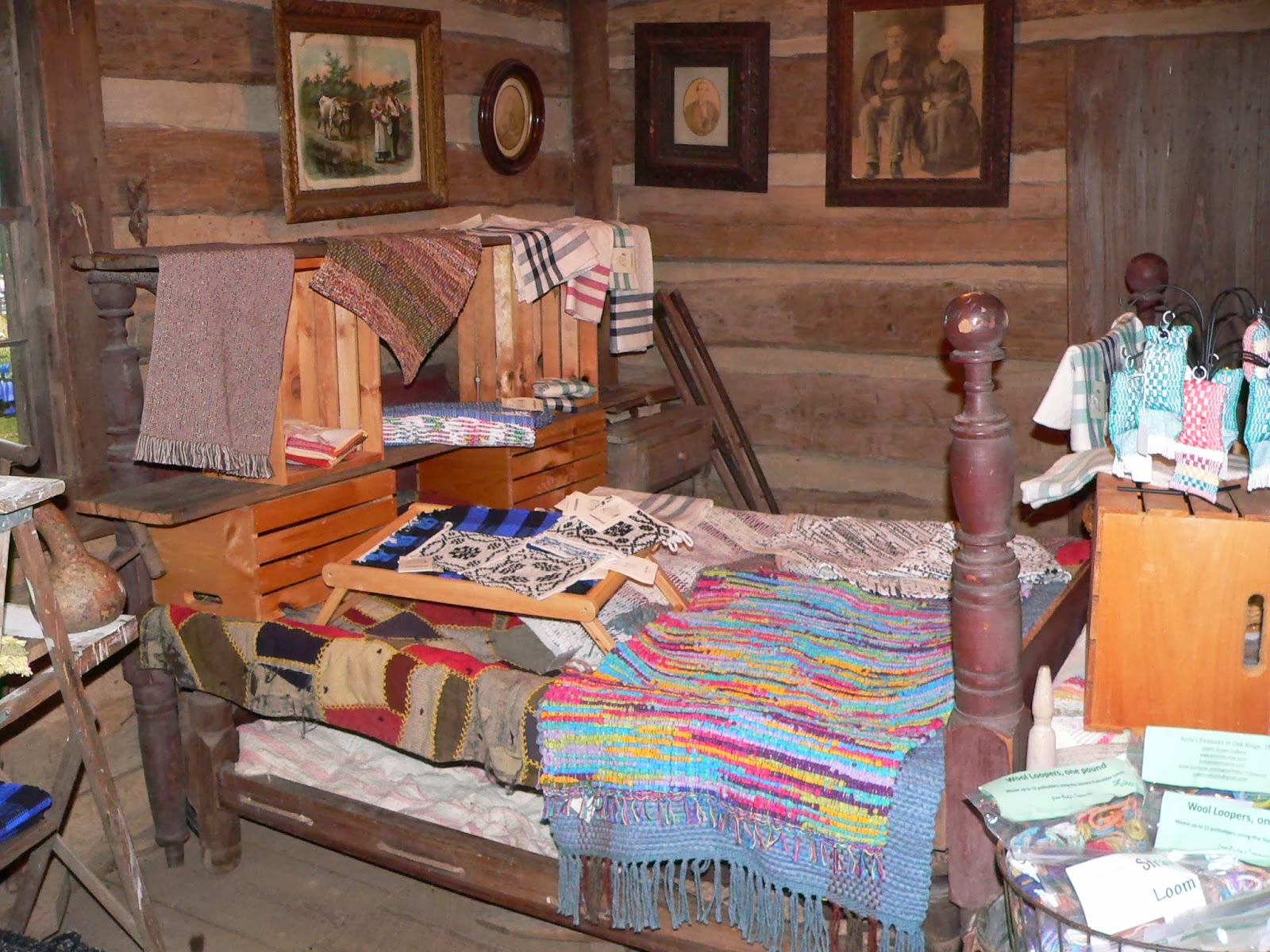The show was 4 days long and each day we had 3 or 4 of our Tuesday Weavers there taking care of the booth. It was well worth the work and everyone met alot of nice people. Also, LouAnn demonstrates weaving in the loom house which is right next door to the cabin we were in. I'm surprised she could talk by the end of yesterday. She always had alot of people wondering how that machine worked. She's good at telling them all about it!