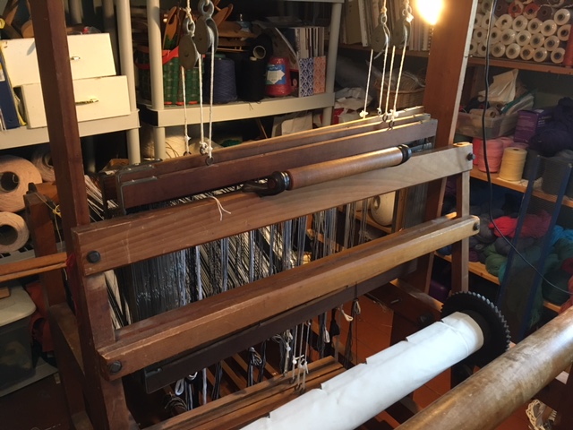 A couple of years ago the Tuesday weavers got a donation of a small loom that was the spitting image of a Cambridge, just pint sized. We promptly named it Carl Jr. and we used it at the Center for quite some time, but as sometimes happens it had been relegated, last summer to the annex when a loom more suited to our needs as a group came along.