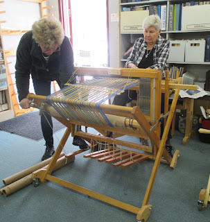 We managed to get a fleece from last weeks "sheep shearing day" skirted and in the wash before she left. We also pulled out one of the clean Jacobs fleeces and I was able to show her how I used the 18 inch hackle together with my wool combs.