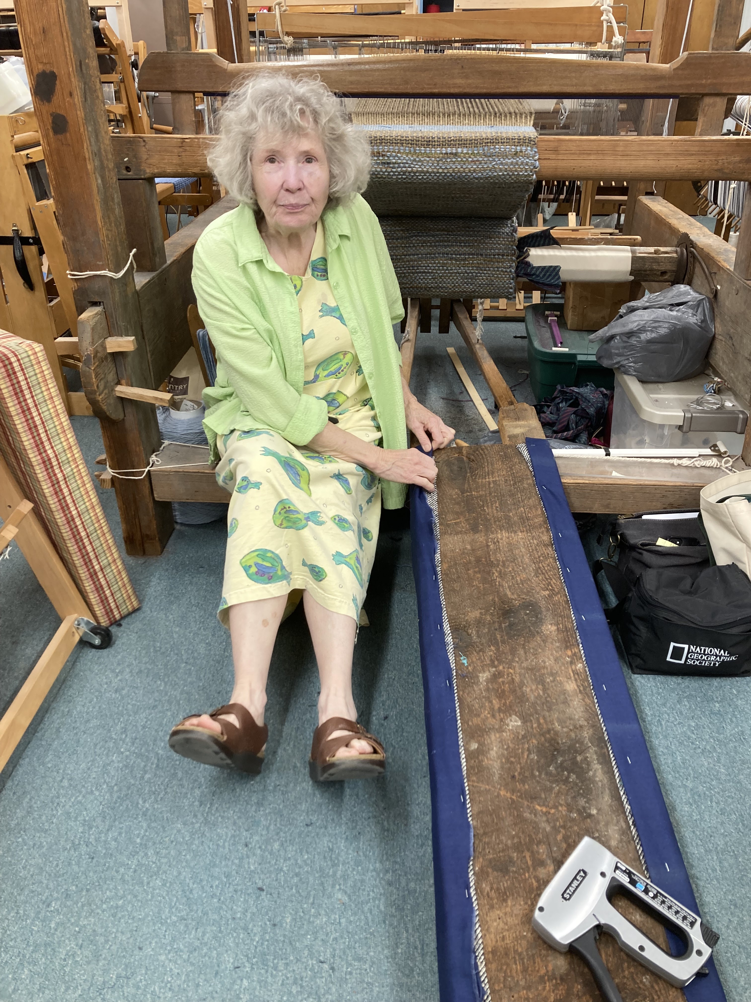 Alice was looking through some photos on her phone this week and she came across one that made us all smile. It was taken, I think, when we moved the old barn loom to the center of the room to make it easier for Carl to get to it. So that would make it 4 or 5 years ago, if I am not mistaken. In the photo you can see front and center Bonnie Miller who we lost before 2020, she is doing what she often did, she was vacuuming the rug, clearing up the bits and pieces that always end up on the floor. To the left of her there is Sharon, who we lost late last year, and to the right of her is LouAnn, who we lost just a few short months ago. I hesitated to put this photo in this blog because of the theme I had chosen for the day. But, even though we do have new young weavers coming into the group that replace those precious ones we have lost, the old weavers/ friends are not discarded, or religated to the annex, but they are fond memories that we will cherish. We will speak their names, so that they are not forgotten and we will pass on to these new young weavers all that they taught us through the years.